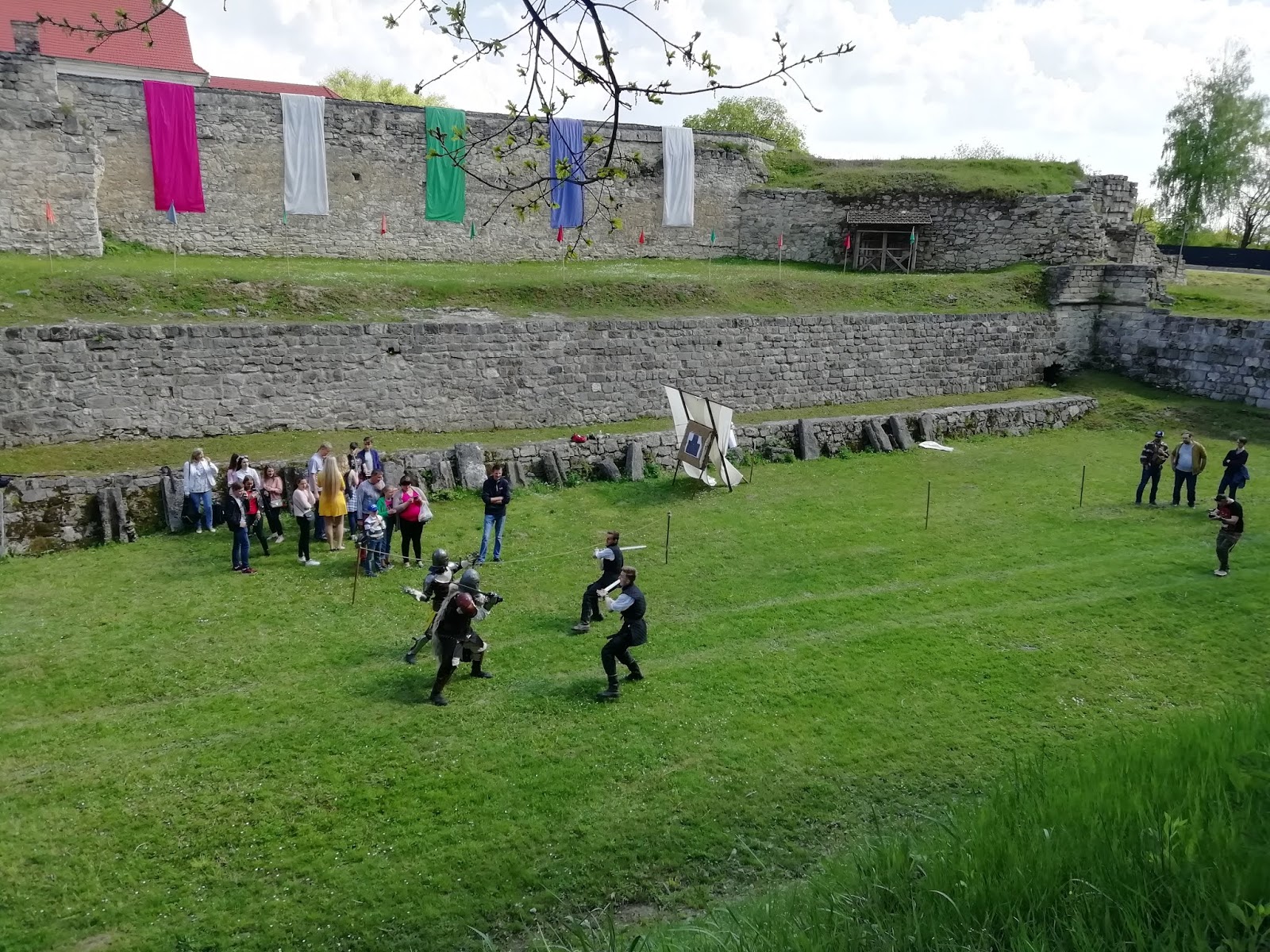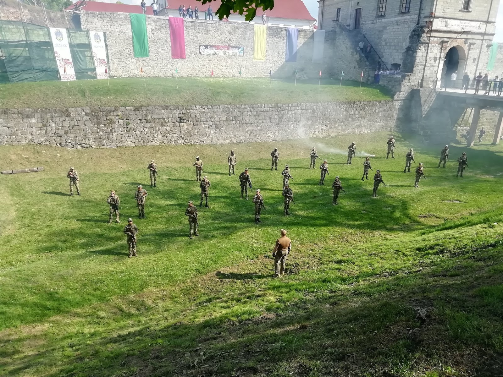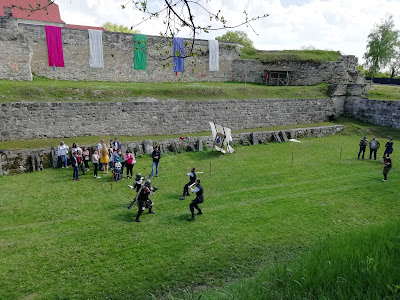 Час від часу чути постріли гармат від яких більшість людей аж підстрибують від несподіванки, це так вітають військові гостей свята. А біля замку в ровах, де колись була вода, зараз влаштовують показові лицарські бої. Виступають тут і браві козаки з шаблями, я все дивувалась наскільки вони спритні зі зброєю, це більше схоже на якийсь танок з вивіреними рухами. Діти з захватом перебігали з одного місця на інше щоб чічого не пропустити, адже це так цікаво, ніби подорож у часі. А курсанти ДНЗ "Тернопільського професійного коледжу ПВФП" влаштували показовий бій, продемонструвавши навики володіння зі зброєю, це було незвично, димові гранати та військовий стрій.