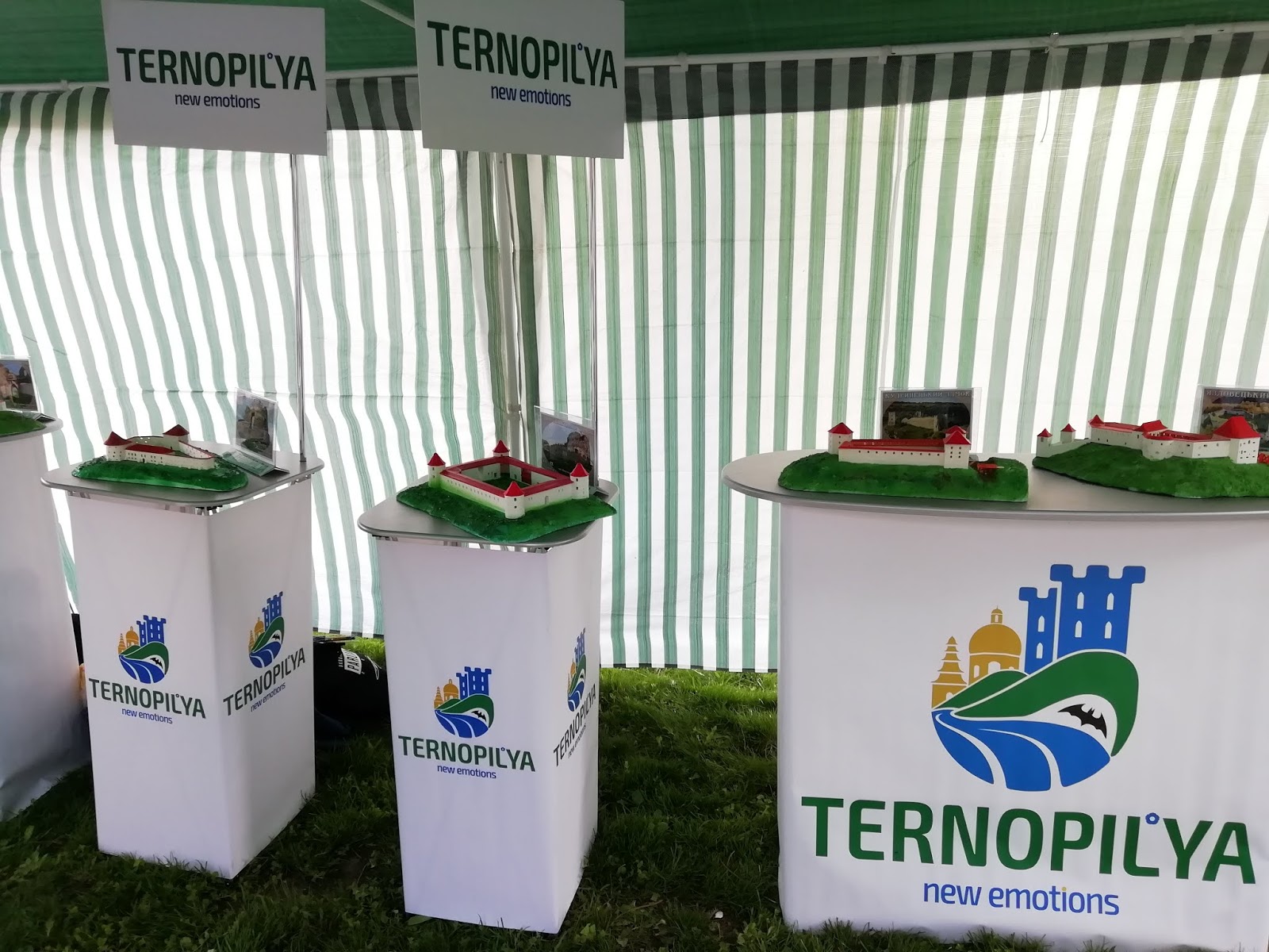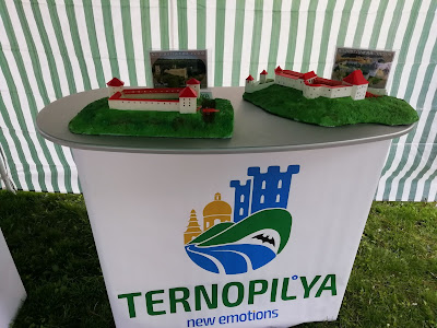 Після активного відпочинку на скеледромі ми вирушаємо у незвичайну екскурсію замками Тернопілля. Адже тут на святі, в наметі, біля місця проведення лотереї, розмістилася дуже цікава виставка макетів замків у 3-D моделях. Які давали змогу побачити якими колись було більшість могутніх фортець області.