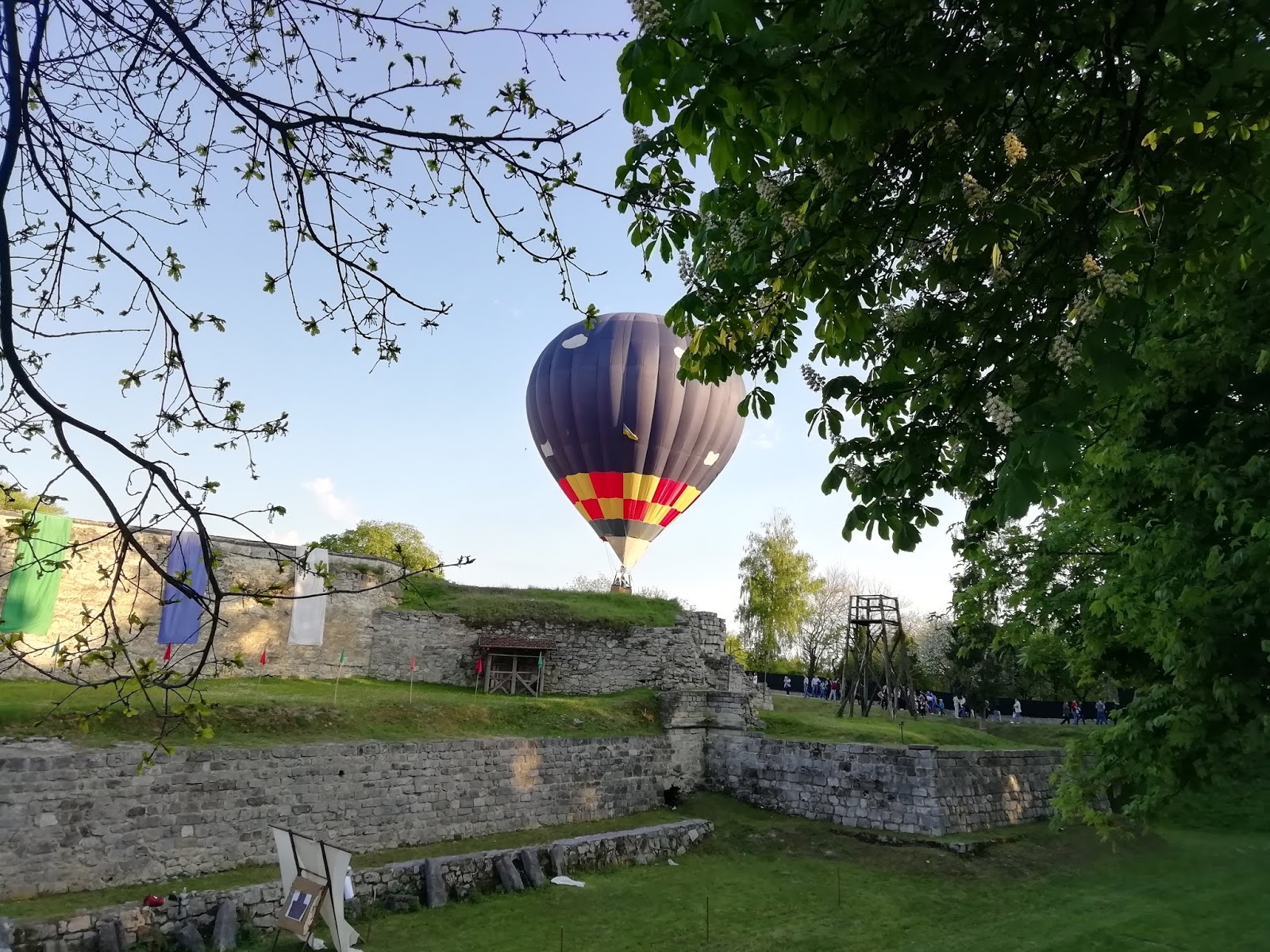 Найцікавіше в Відкритті літнього туристичного сезону ми залишили на останок. Вищі сили почули молитви організаторів і протягом дня була на прочуд тепла і сонячна погода, попри прогнози синоптиків про дощ. Проте пориви вітру не дали змогу вдень відразу запустити головну родзинку фестивалю - повітряну кулю, і довелося чекати вечора. Та від цього головна атракція стала не менш цікавою і зібрала безліч глядачів. А переможці туристичної лотереї, хто виграв квиточки, ще й стали справжніми повітроплавцями і мали змогу піднятись на кулі. Кулю привезли наші давні знайомі з Галицького товариства повітроплавців, справжні професіонали своєї справи. Як це неймовірно гарно, коли над стінами древньої фортеці здіймається у небо повітряна куля, незабутні спогади.